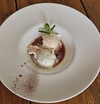 Gelato artigianale alla vaniglia con uvetta sotto grappa oppure con composta di frutta della nostra azienda